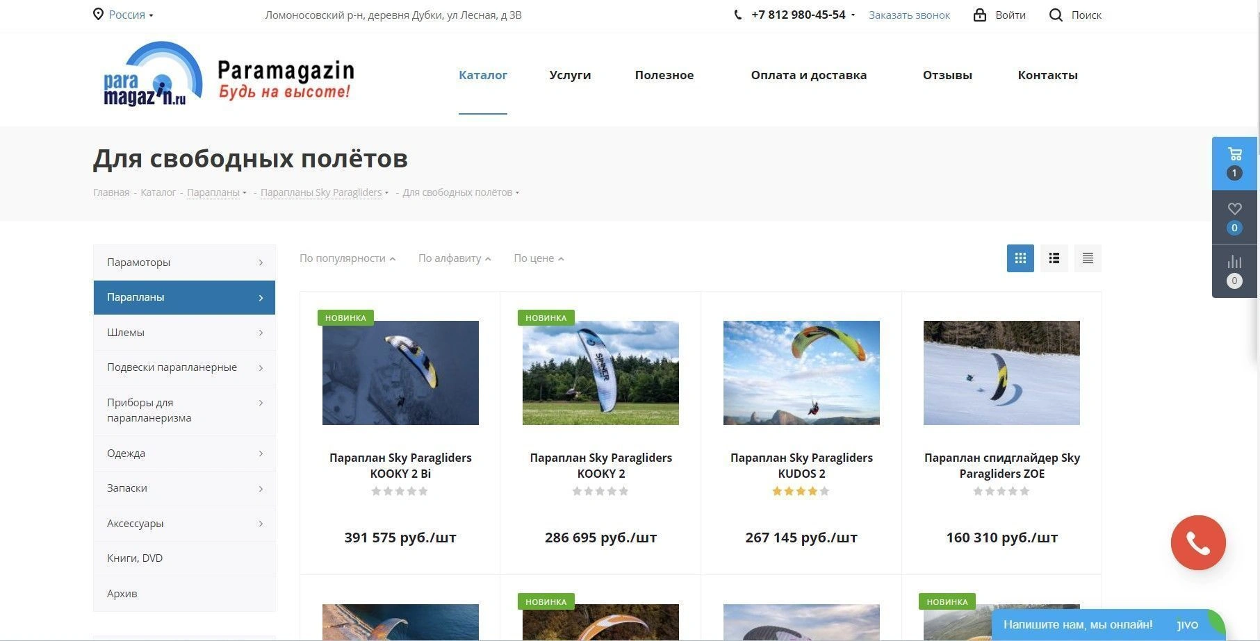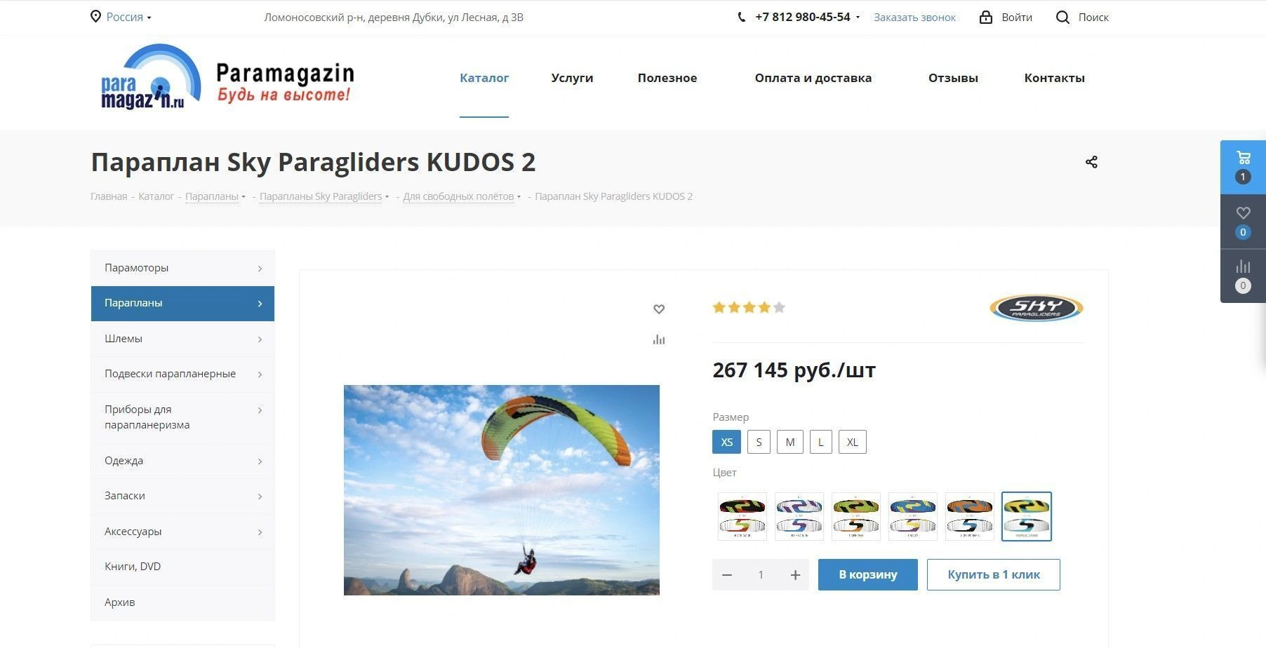 Интернет-магазин парапланерного оборудования – что мы сделали: